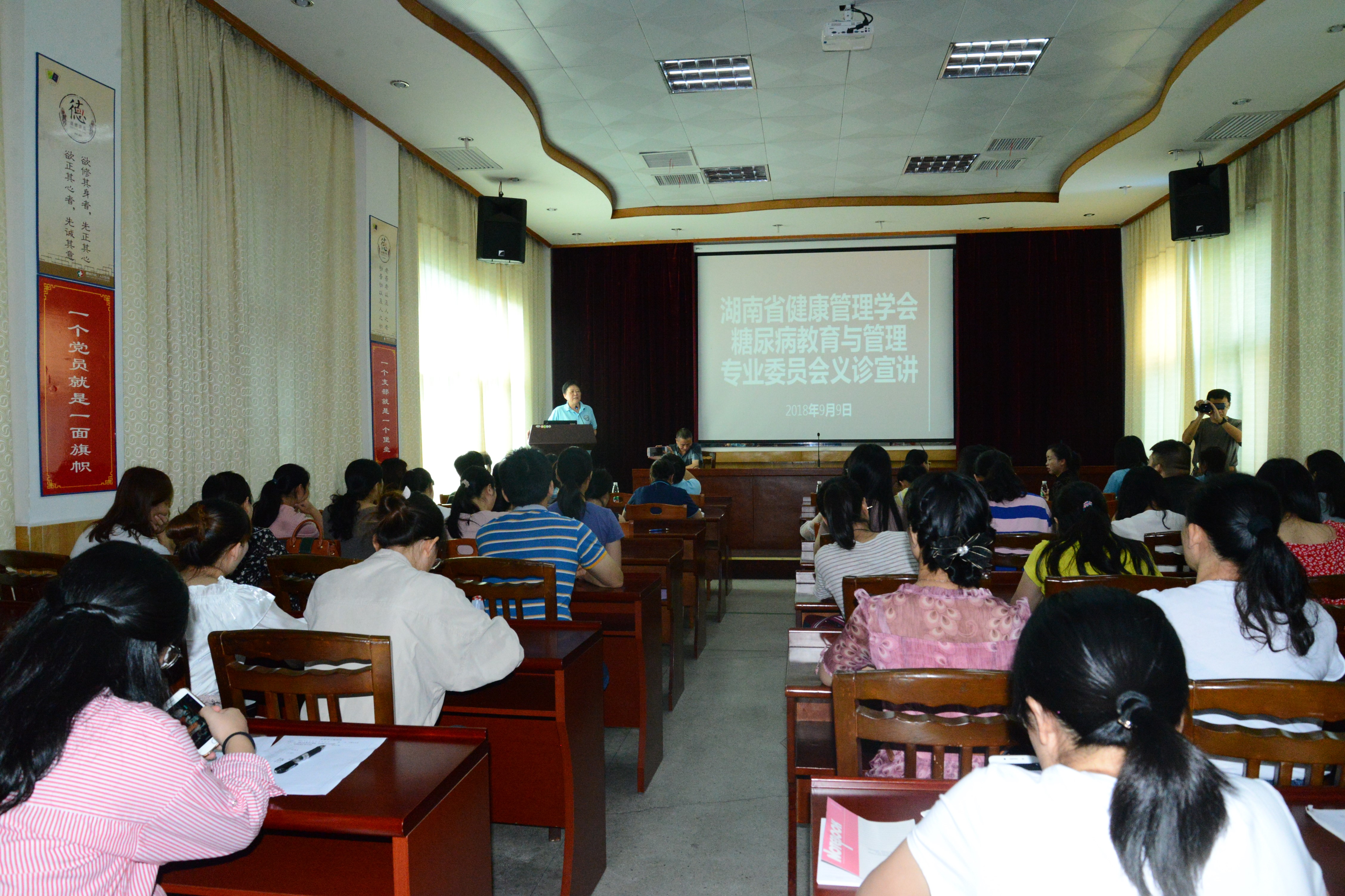 9月10日上午,在郴州三医院邓兆旭副院长的主持下,美国Chao氏全球健康研究首席,美国护理院士Jyu-Lin Chen教授向百余名医务人员和糖尿病患者讲述了《美国糖尿病患者自我管理》,重点阐述了自我管理培训和教育的重要性、自我护理的目标、自我管理计划和行为等,为延缓糖尿病并发症的发生和发展起到了积极作用。
