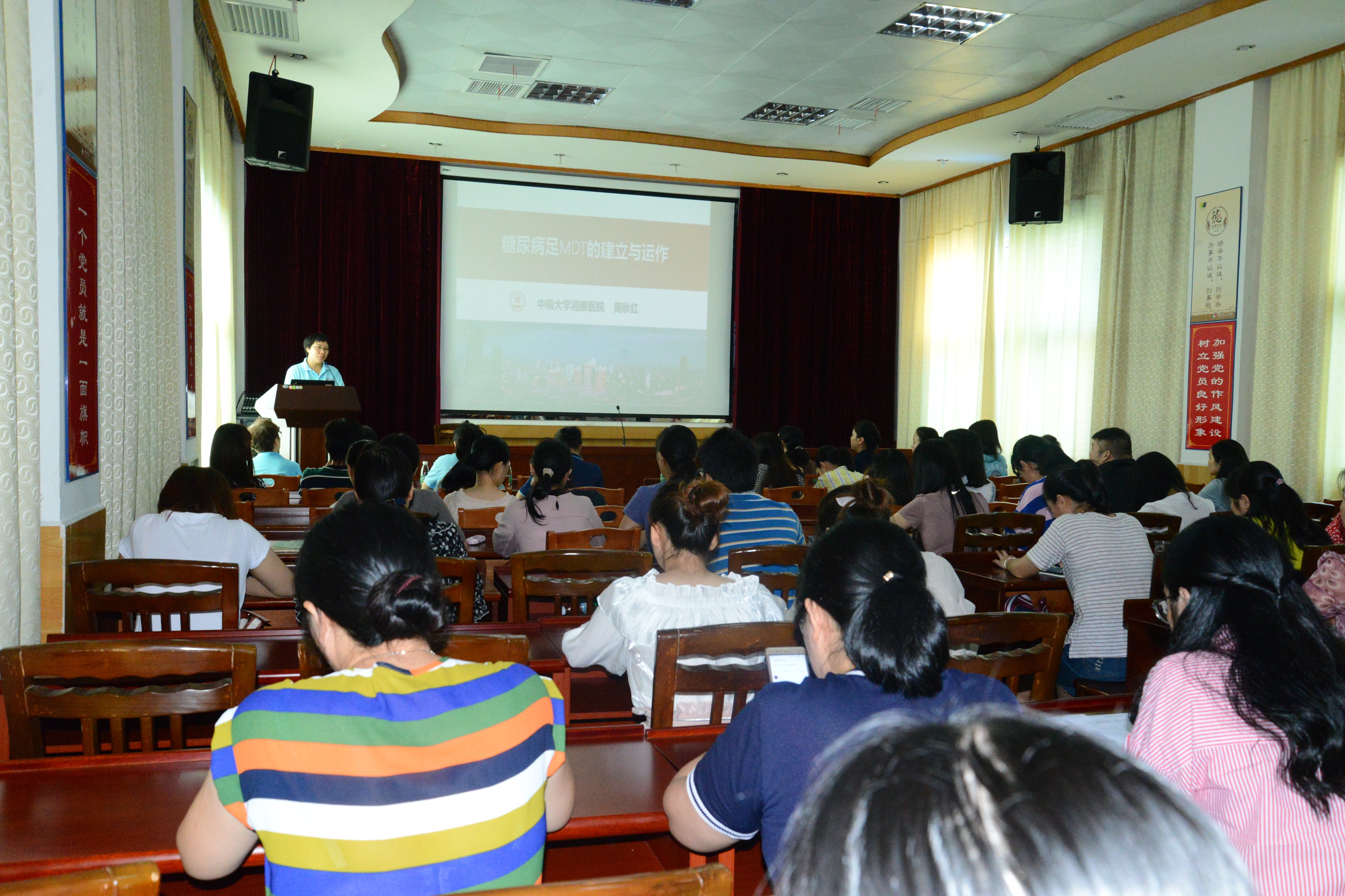 另一组专家前往学术报告厅进行专题讲座,讲座由郴州市三医院刘文峰副院长主持,院内百余名医护人员参与本次讲座。湖南省健康管理学会冷晓红副秘书长在致辞中表示,这是本届专委会走进的第五家基层医院,已经形成一定的模式,希望通过这样的义诊,造福更多的基层医护人员和糖尿病患者。随后,周秋红主任委员分享了《糖尿病足多学科团队的建立与运作》。课后,学员们纷纷表示,多学科合作团队的建立,值得各家医院借鉴和学习,它不仅可以提升疑难病诊治水平和医院整体诊疗水平,而且能优化患者就医流程、节约患者费用、为患者赢得宝贵的救治时机。