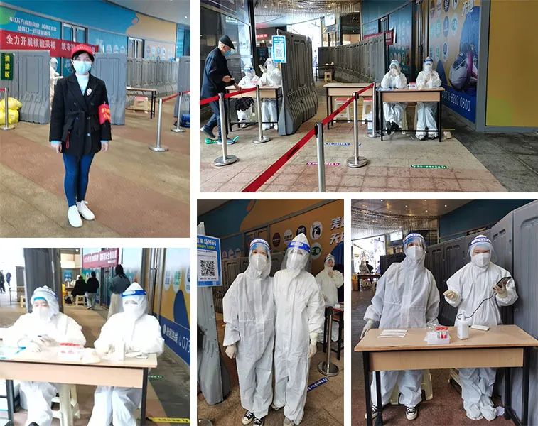 捐赠结束后学会的志愿者们马不停蹄的赶到核酸检测点,经社区工作人员培训后,穿上防护服,迅速接手工作,整个下午不能上厕所,不能饮水,在低温雨水天,排除万难,依然坚守岗位,维持秩序、登记信息、扫码测温、社区宣传等志愿服务。