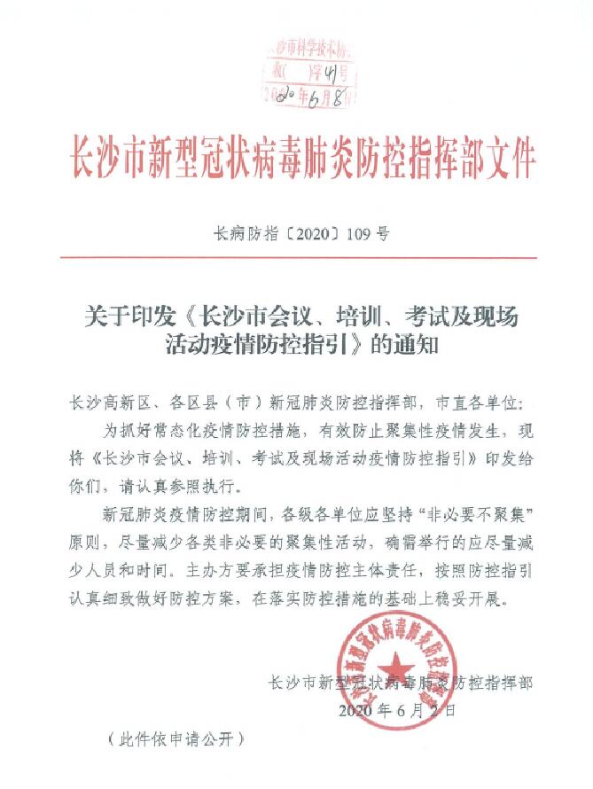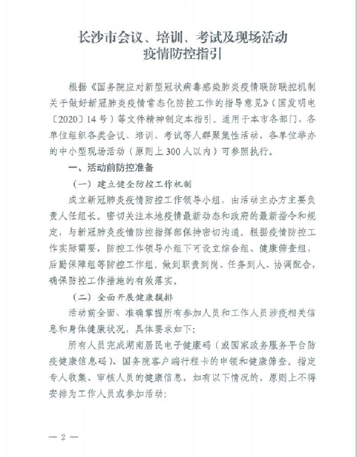长沙市会议、培训、考试及现场活动疫情防控指引