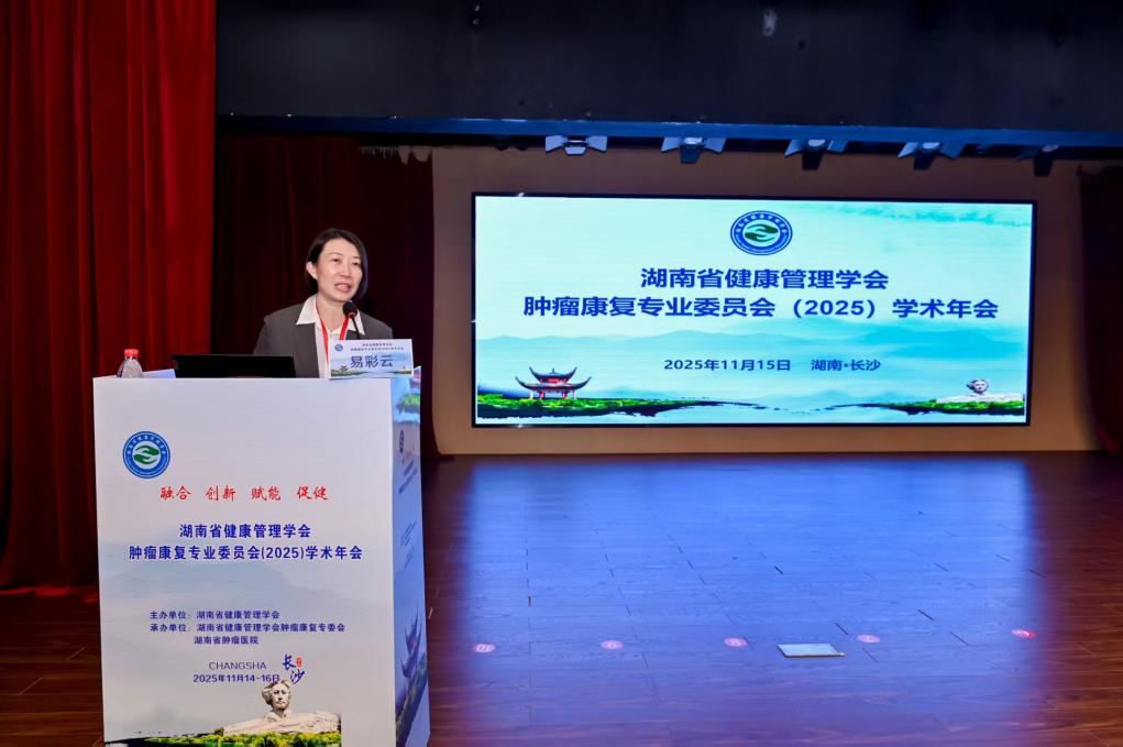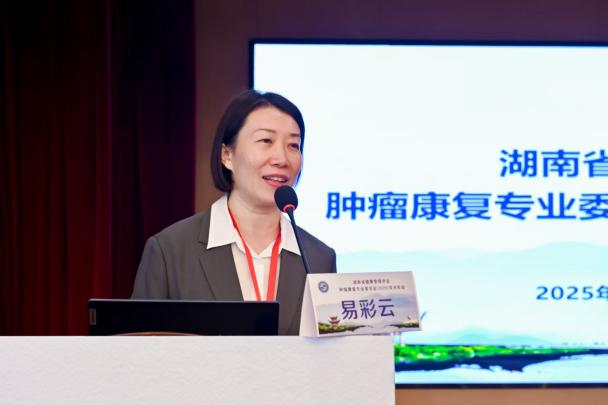 会议最后,专委会主任委员易彩云教授作总结发言。她高度评价本次年会的学术价值与交流成效,指出大会成功搭建了省内外同仁高效互动平台,促进了先进理念、前沿技术与实践经验的深度共享,对推动湖南省乃至全国肿瘤康复事业高质量发展具有重要意义。本次年会内容充实、成果丰硕,进一步凝聚了行业力量,为肿瘤康复学科发展注入新动能,全方位助力肿瘤患者生存质量提升。