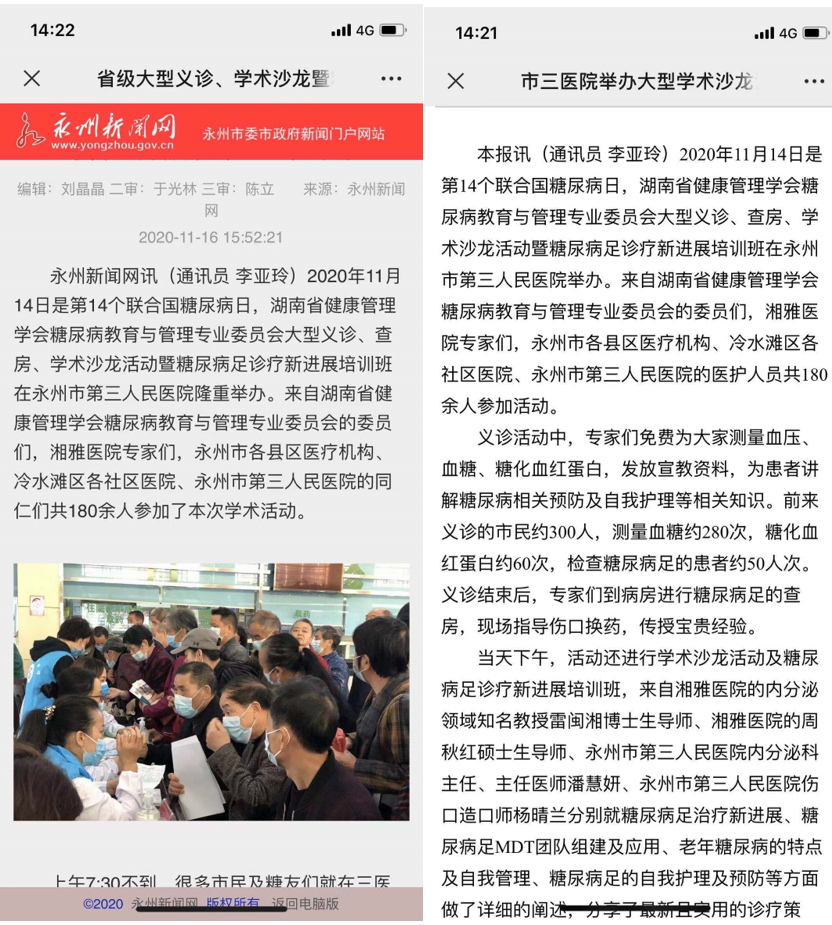 11月14日是第14个联合国糖尿病日,今年的宣传主题为“护士与糖尿病”。湖南省健康管理学会糖尿病教育与管理专业委员会第八期学术沙龙、义诊活动暨第五站“糖心关爱”公益患教活动在永州市第三人民医院圆满落幕。来自该专委会的10余名委员志愿者参与了本次活动。