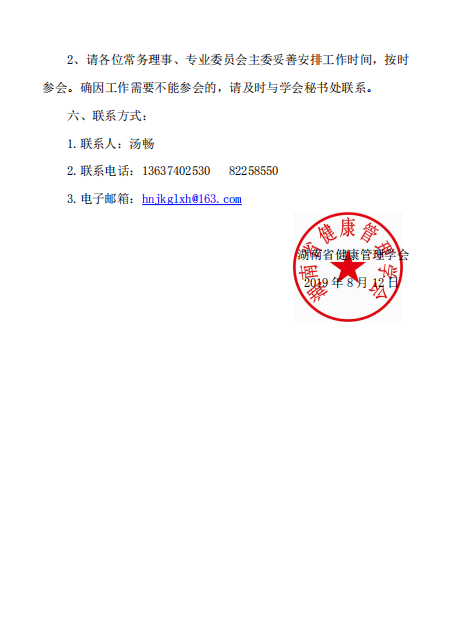 关于召开湖南省健康管理学会第二届第十一次 常务理事会的通知