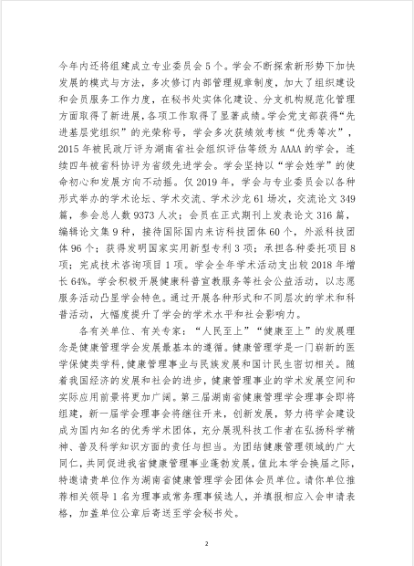 湖南省健康管理学会第三届理事会邀请函