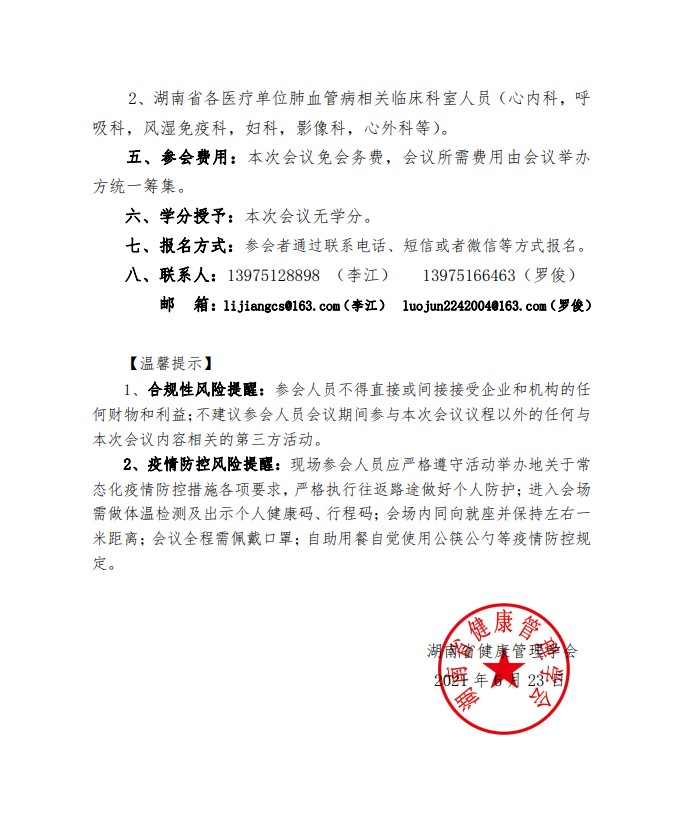关于召开“第一届潇湘肺高血压诊疗技术培训班”的通知(第一轮)