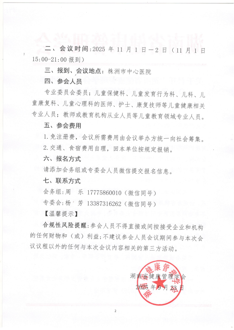 关于召开“湖南省健康管理学会儿童青少年身心发展医教协同管理专业委员会(2025)学术年会”的通知
