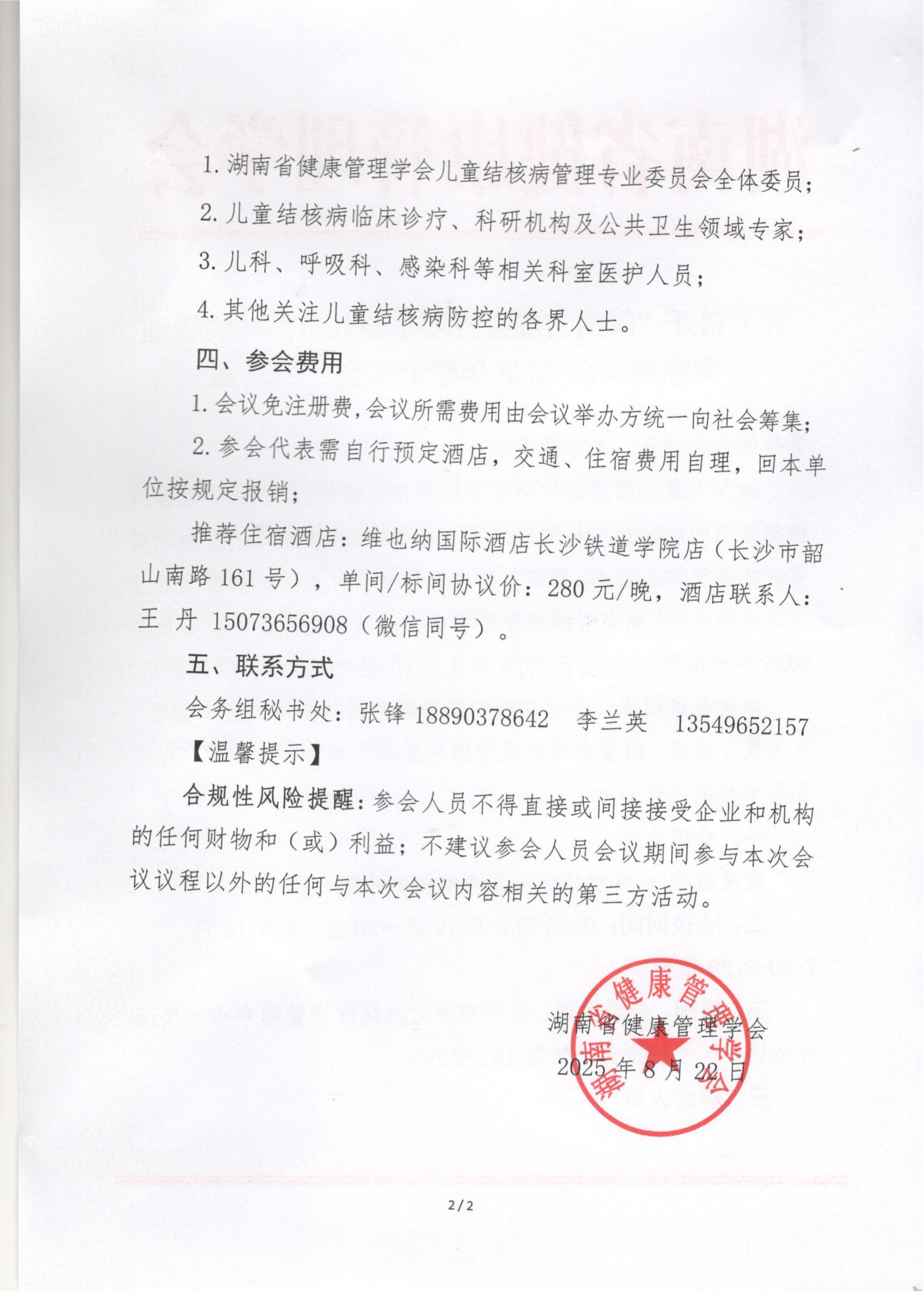 关于召开“湖南省健康管理学会儿童结核病管理专业委员会2025年学术年会”的通知