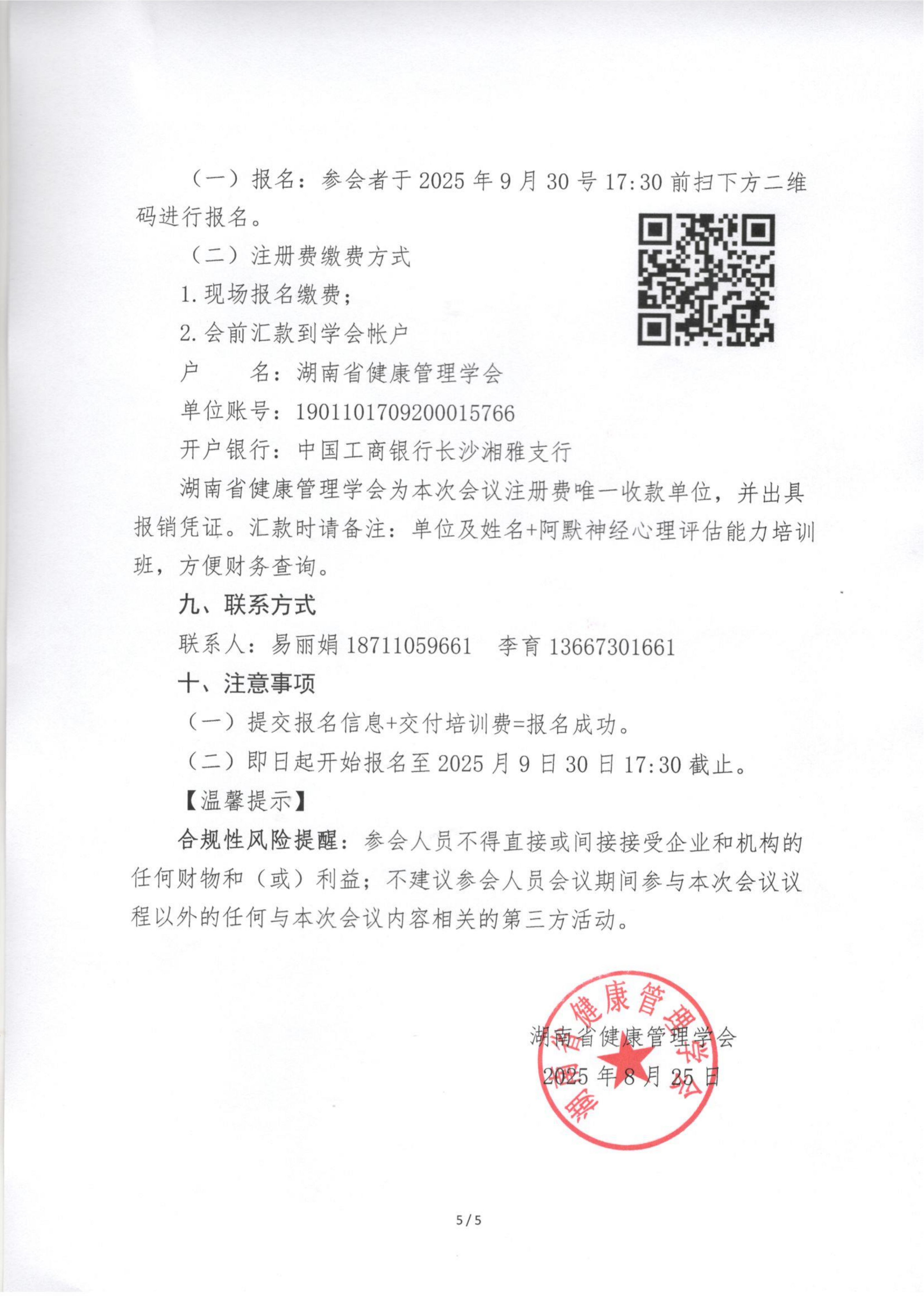 关于举办“湖南省健康管理学会阿尔兹海默症健康管理专业委员会2025年年会暨神经心理评估能力培训班”的通知