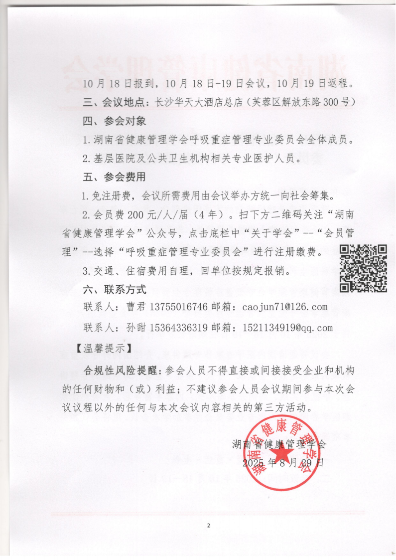 关于召开“湖南省健康管理学会呼吸重症管理专业委员会(2025)年会暨换届大会”的通知