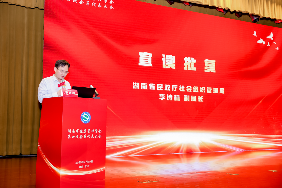 4月19日,湖南省健康管理学会第四次会员代表大会在长沙隆重召开,大会选举产生第四届理事会,聚焦基层医疗能力提升、健康知识普及与便民服务创新,擘画湖南卫生健康高质量发展新篇章,为三湘百姓健康福祉注入新动能。湖南省科学技术协会副主席陈松,湖南省民政厅社会组织管理局副局长李诗林,湖南省卫生健康委员会健康促进处处长王可为,湘雅医学院常务副院长武明花等领导出席开幕式,与全省近500名卫生健康工作者共谋健康湖南建设大计。