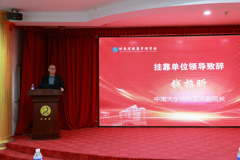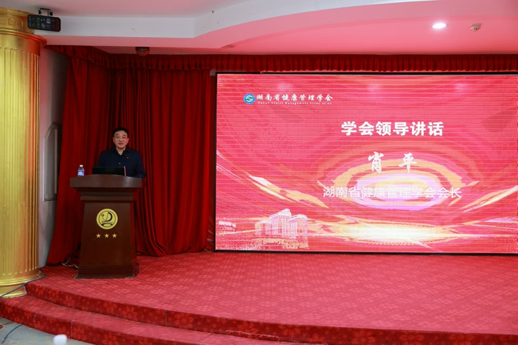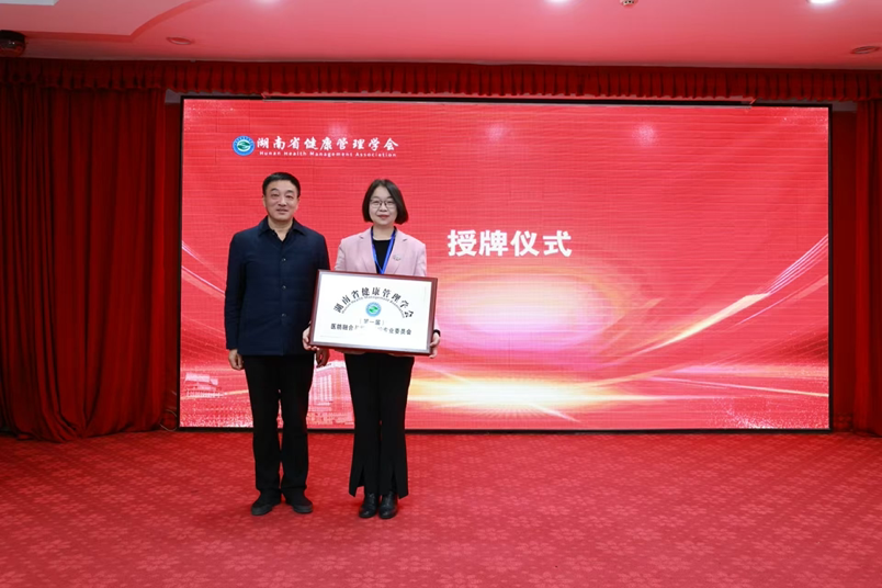 随后湖南省健康管理学会常务副秘书长唐君汉主持了湖南省健康管理学会医防融合与智慧感控专业委员会成立大会,会上湖南省健康管理学会副会长兼秘书长易致远宣读了专业委员会成立批复文件,紧接着湖南省健康管理学会会长肖平教授给专业委员会进行了授牌并讲话,同时中南大学湘雅医院副院长钱招昕教授进行了致辞。