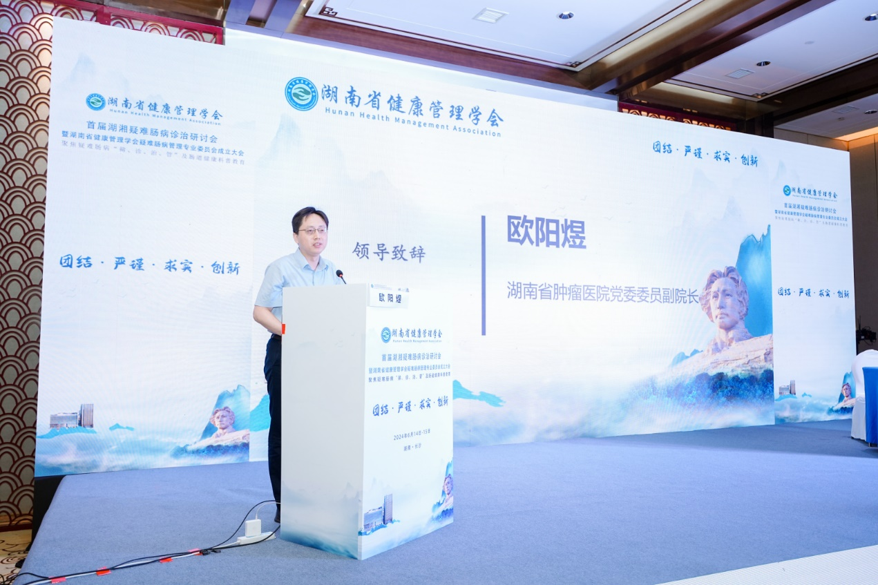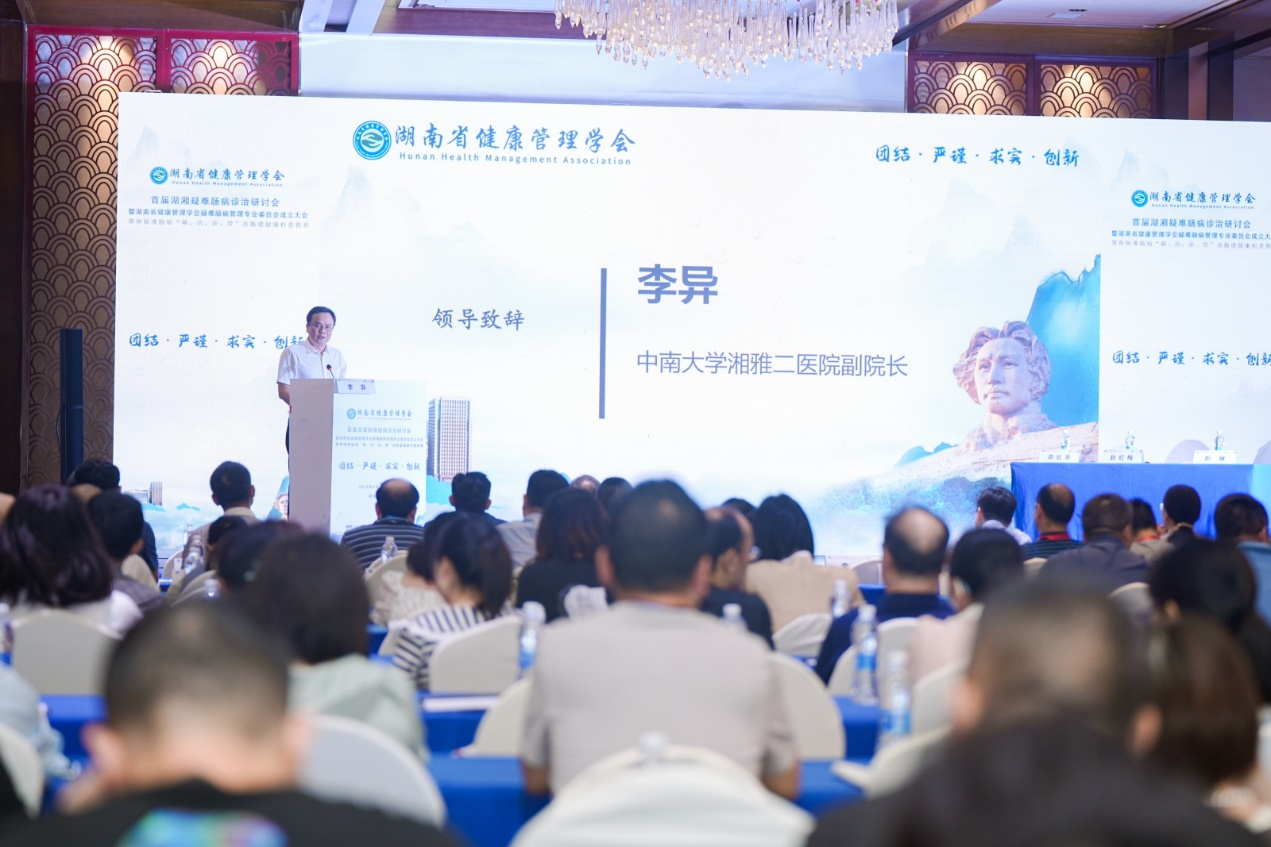 湘雅二医院李异副院长在现场对湖南省健康管理学会疑难肠病管理专业委员会给与充分支持与高度评价。他介绍湘雅二医院炎症性肠病诊治中心在吴小平教授的带领下,王学红教授的推动下发展至今,是目前湖南省内最大的炎症性肠病诊治机构,在全国也是实力雄厚的炎症性肠病诊治中心之一。希望专委会能持续推进我省从炎症性肠病到各类疑难肠病医学的发展,开创湖南省疑难肠病领域的崭新纪元。湖南省健康管理学会副会长欧阳煜教授,表示疑难肠病管理专业委员会的成立,有利于在各地区医院开展会诊与多中心合作,促进医教研协同发展,使湖南省疑难肠病相关的综合治疗管理达到国内一流水平,并祝贺大会的成功举办。