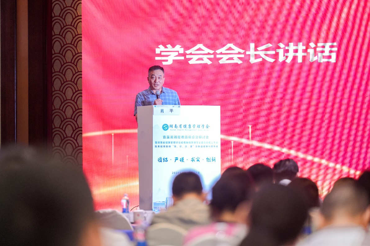 肖平教授对疑难肠病管理专委会成立表示了祝贺,并提出了建议和期盼。希望专委会在成立后,在疑难肠病领域,一要充分利用学会平台在各级医务人员之间开展专业技术、学科建设和医学科普等方面的交流培训;二要开展学术交流活动、科普宣传活动、继续教育培训项目。三要开展基层帮扶工作,了解疑难肠病领域的最新动态,对基层医院给予工作指导,快速提高基层医院的业务水平,实现基层疑难肠病患者早筛、早诊,早治。四要提高全省疑难肠病管理水平,促进消化内科的炎症性肠病等疑难肠病亚专科规范化建设进程。在各地区医院开展会诊与多中心合作,促进医教研协同发展。关注带动多学科交流,为各类疑难肠病的早期识别、筛查、诊断、管理制定相应的诊治流程,形成规范和行业标准,使湖南省疑难肠病相关的综合治疗管理达到国内一流水平。