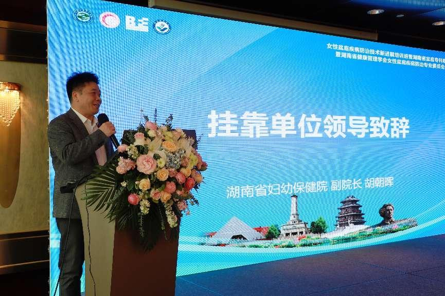 湖南省妇幼保健院胡朝晖副院长致欢迎辞,并祝贺女性盆底疾病防治专业委员会成立。胡院长表示,专委员会的成立,将为盆底这一领域注入新的活力和动力,为广大女性朋友的健康保驾护航。相信在专家们的共同努力下,我们一定能够取得更加显著的成绩,为女性朋友的健康贡献更多的力量。