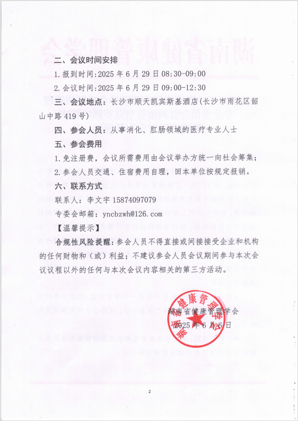 关于召开“湖南省健康管理学会疑难肠病管理专业委员会炎症性肠病研讨会(常德)”的通知