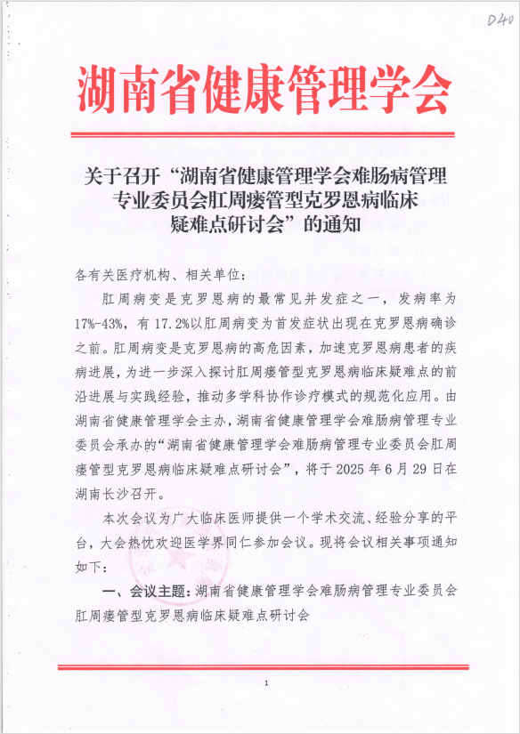 关于召开“湖南省健康管理学会难肠病管理专业委员会肛周瘘管型克罗恩病临床疑难点研讨会”的通知
