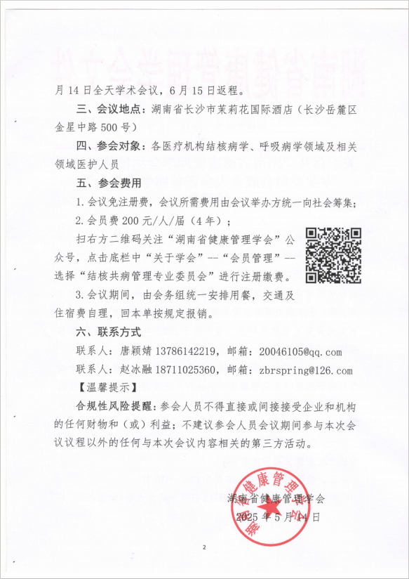关于召开“湖南省健康管理学会结核共病管理专业委员会成立大会暨首届学术年会” 的通知