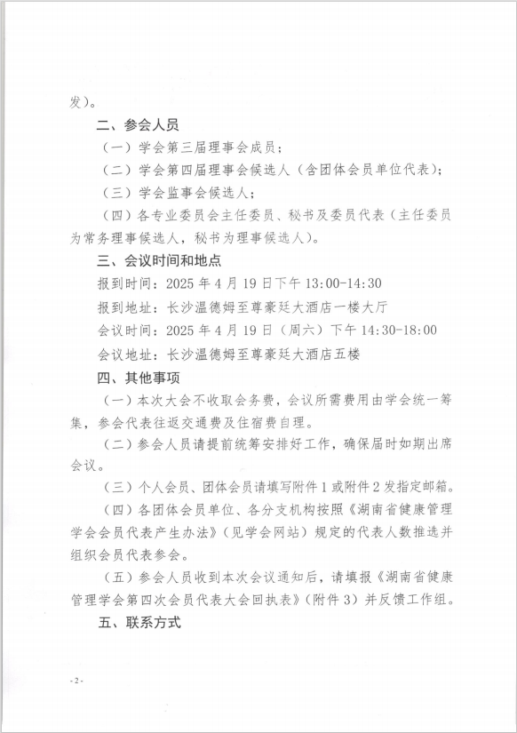 关于召开湖南省健康管理学会第四次会员代表大会及理事会换届的通知 (第二轮)
