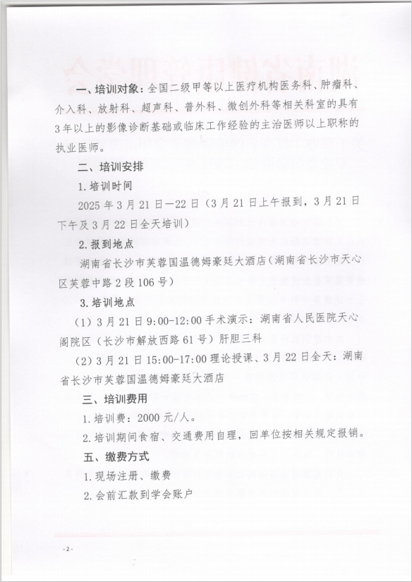 关于举办“湖南省健康管理学会加速康复外科专业委员会肿瘤消融技术培训班” 的通知