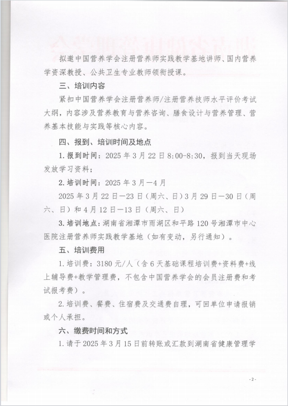 关于举办“第二期注册营养师/注册营养技师 考前培训班”的通知