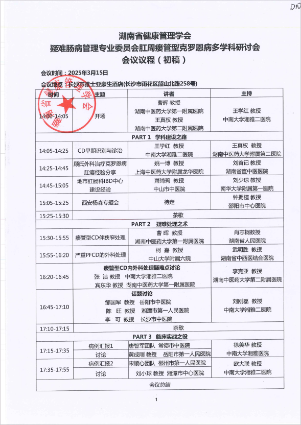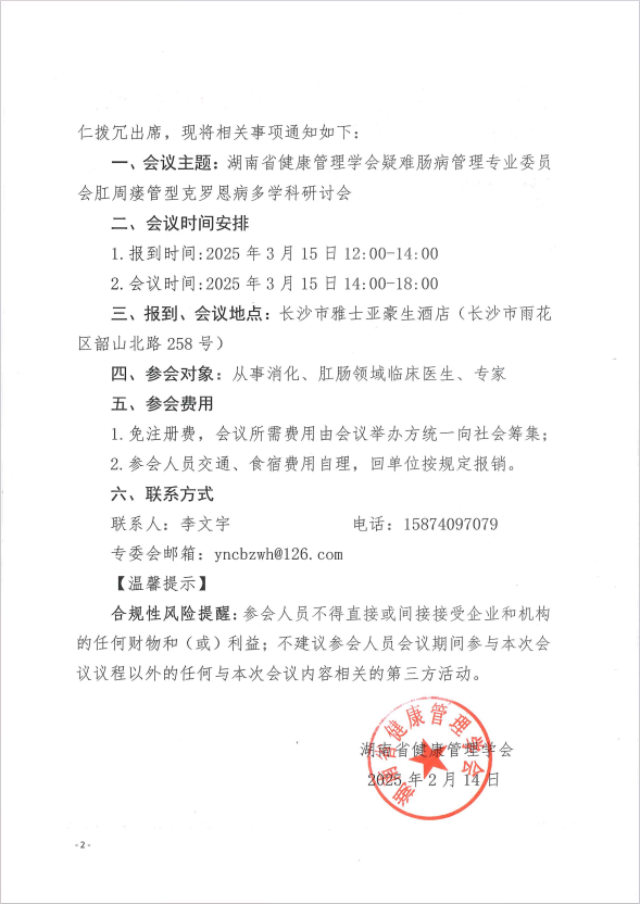 关于召开“湖南省健康管理学会疑难肠病管理专业委员会肛周瘘管型克罗恩病多学科研讨会”的通知