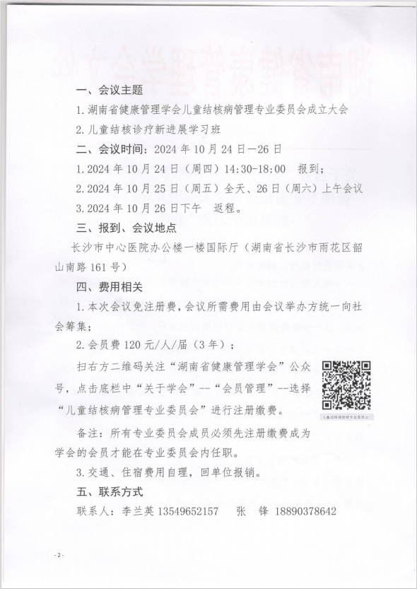 关于召开“湖南省健康管理学会儿童结核病管理专业委员会成立大会暨儿童结核诊疗新进展学习班”的通知