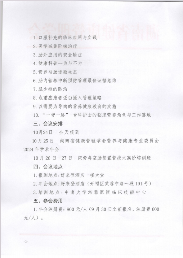 关于召开“湖南省健康管理学会营养与健康专业委员会2024年学术年会暨床旁鼻空肠管置管技术高阶培训班”通知