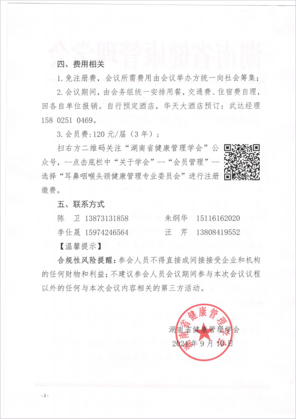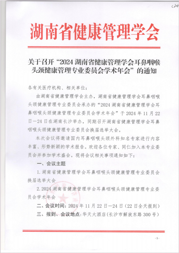 关于召开“2024湖南省健康管理学会耳鼻咽喉头颈健康管理专业委员会学术年会”的通知