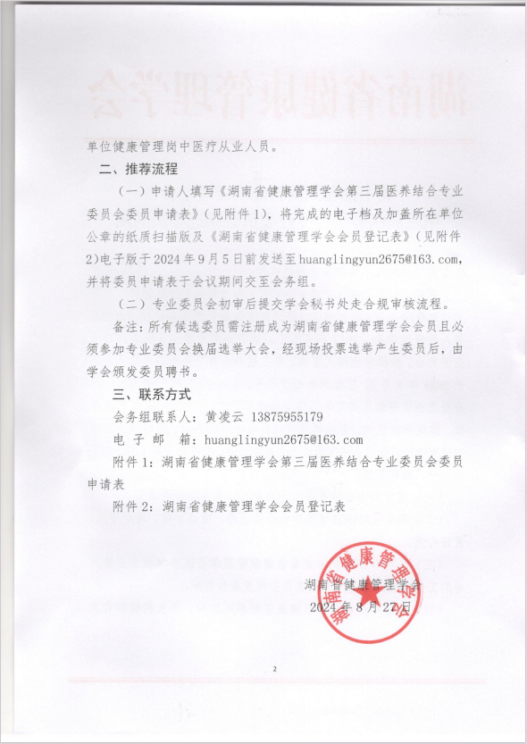 关于推荐湖南省健康管理学会第三届医养结合专业委员会候选委员的函