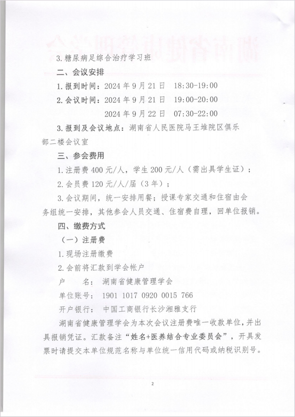 关于召开“潇湘医养结合交流会议暨湖南省健康管理学会医养结合专业委员会换届大会暨糖尿病足综合治疗学习班” 的通知