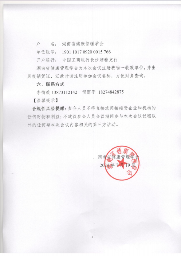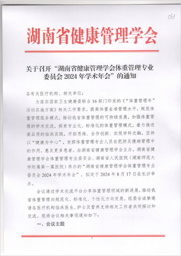 关于召开“湖南省健康管理学会体重管理专业委员会2024年学术年会”的通知