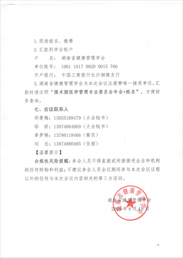 关于召开“湖南省健康管理学会围术期医学管理专业委员会第四届第一次年会 暨换届会议”的通知