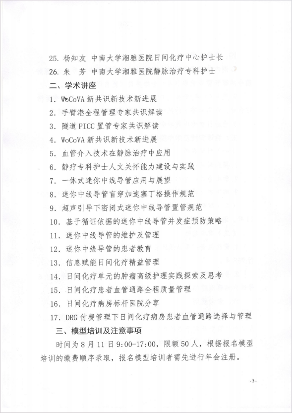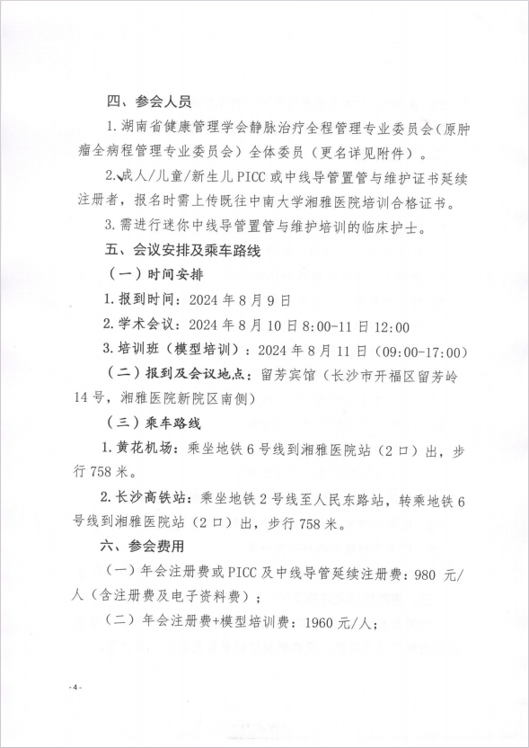 关于召开“2024年湖南省健康管理学会静脉治疗全程管理专业委员会年会暨迷你中线导管置管及维护培训班”的通知 (第二轮)