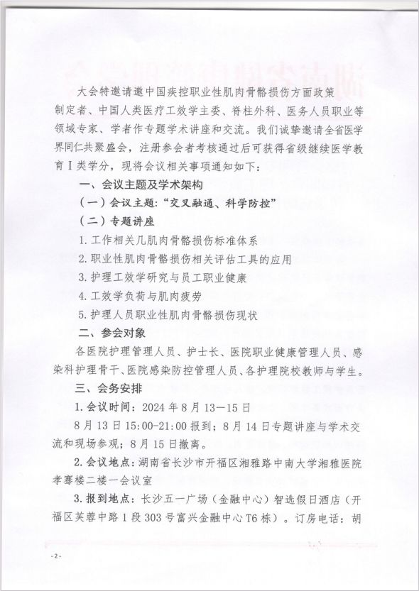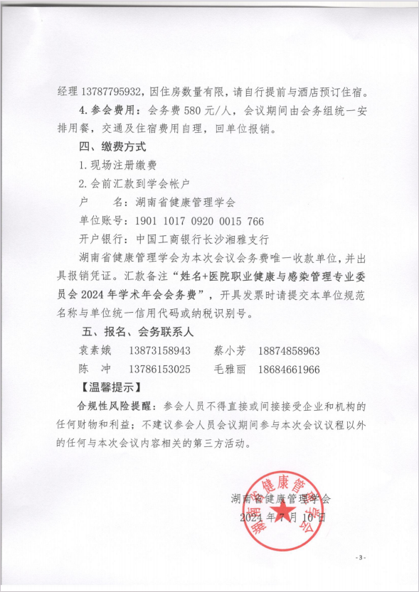 关于举办“湖南省健康管理学会医院职业健康与感染管理专业委员会2024年学术年会暨首届湘雅护理工效学学术交流会议暨新发传染病防控与预警监测新进展”的通知