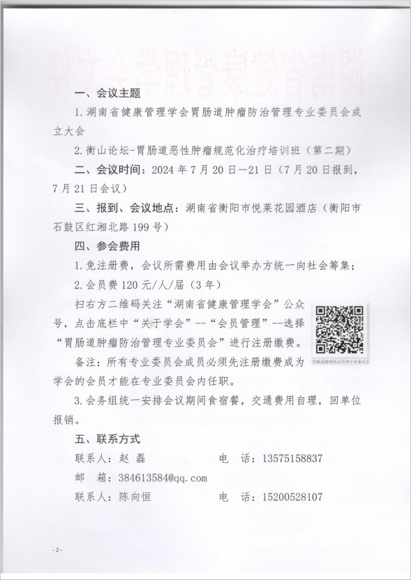 关于召开“衡山论坛-胃肠道恶性肿瘤规范化治疗培训班(第二期)暨湖南省健康管理学会胃肠道肿瘤防治管理专业委员会成立大会”的通知