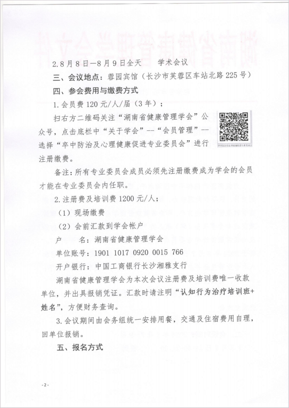 关于召开“湖南省健康管理学会卒中防治及心理健康促进专业委员会成立大会暨认知行为治疗培训班”的通知