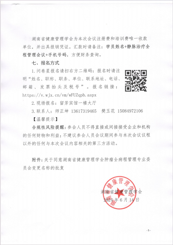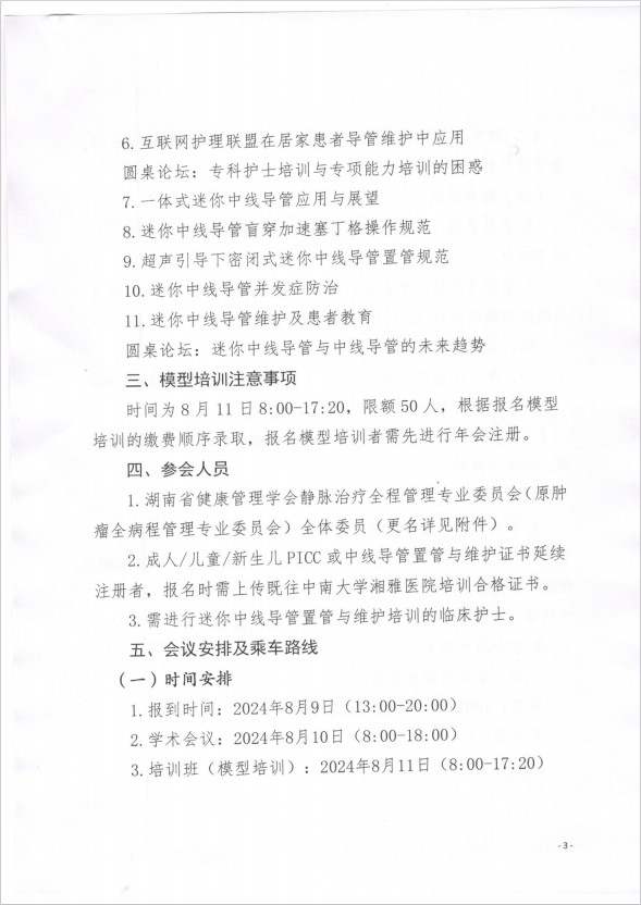 关于召开“2024年湖南省健康管理学会静脉治疗全程管理专业委员会年会暨迷你中线导管置管及维护培训班”的通知