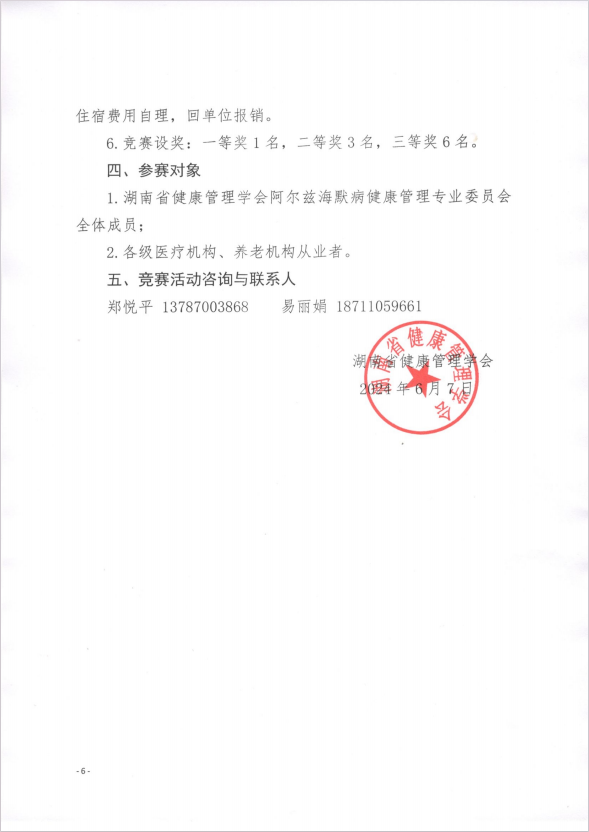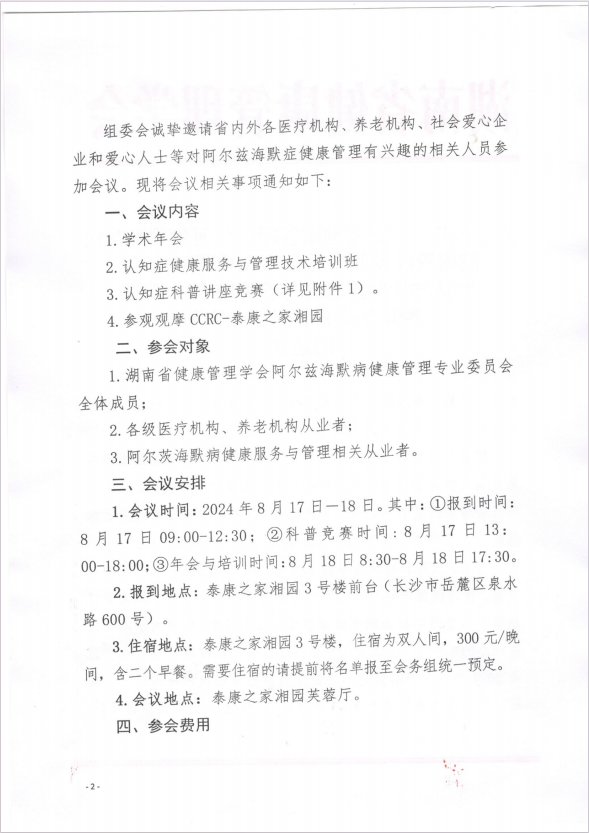 关于召开“湖南省健康管理学会阿尔兹海默症健康管理专业委员会2024年学术年会暨认知症健康服务与管理技术培训班暨认知症科普讲座竞赛” 的通知