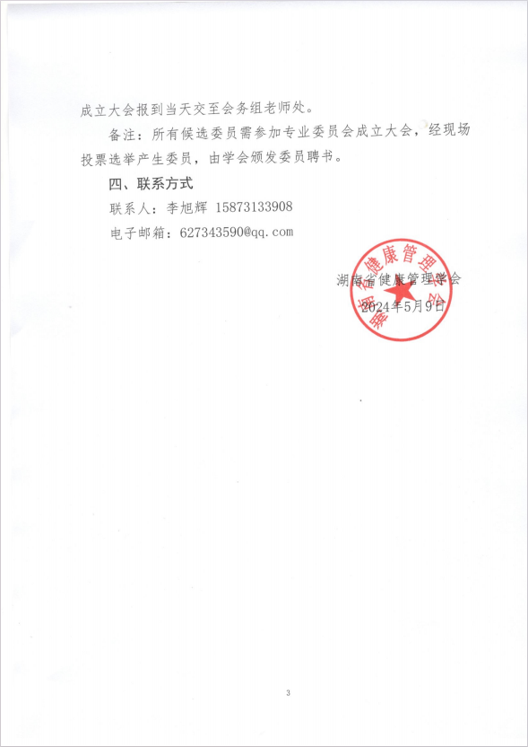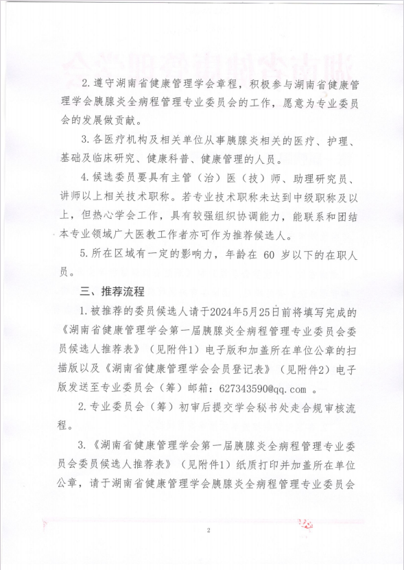 关于推荐湖南省健康管理学会第一届胰腺炎全病程管理专业委员会委员的函