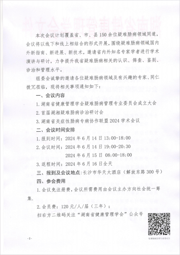 关于召开“首届湖湘疑难肠病诊治研讨会暨湖南省炎症性肠病专病协作联盟2024学术会议暨湖南省健康管理学会疑难肠病管理专业委员会成立大会”的通知