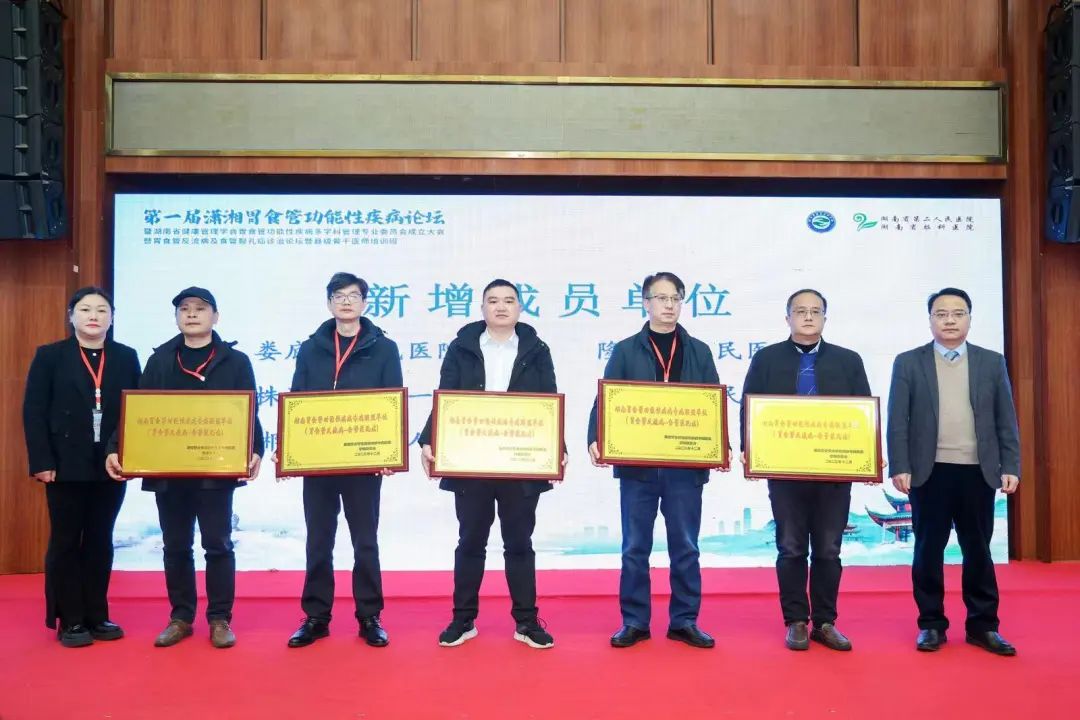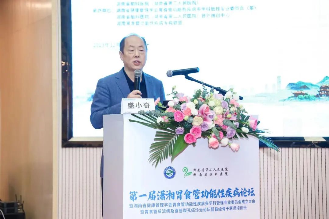 12月23日,第一届潇湘胃食管功能性疾病论坛暨湖南省健康管理学会胃食管功能性疾病多学科管理专业委员会成立大会暨湖南省县级骨干医师培训班召开。湖南省健康管理学会党支部书记、副会长盛小奇,副会长兼秘书长易致远,副秘书长汤畅,湖南省脑科医院(湖南省第二人民医院)党委副书记、院长周绍明等领导出席会议。
