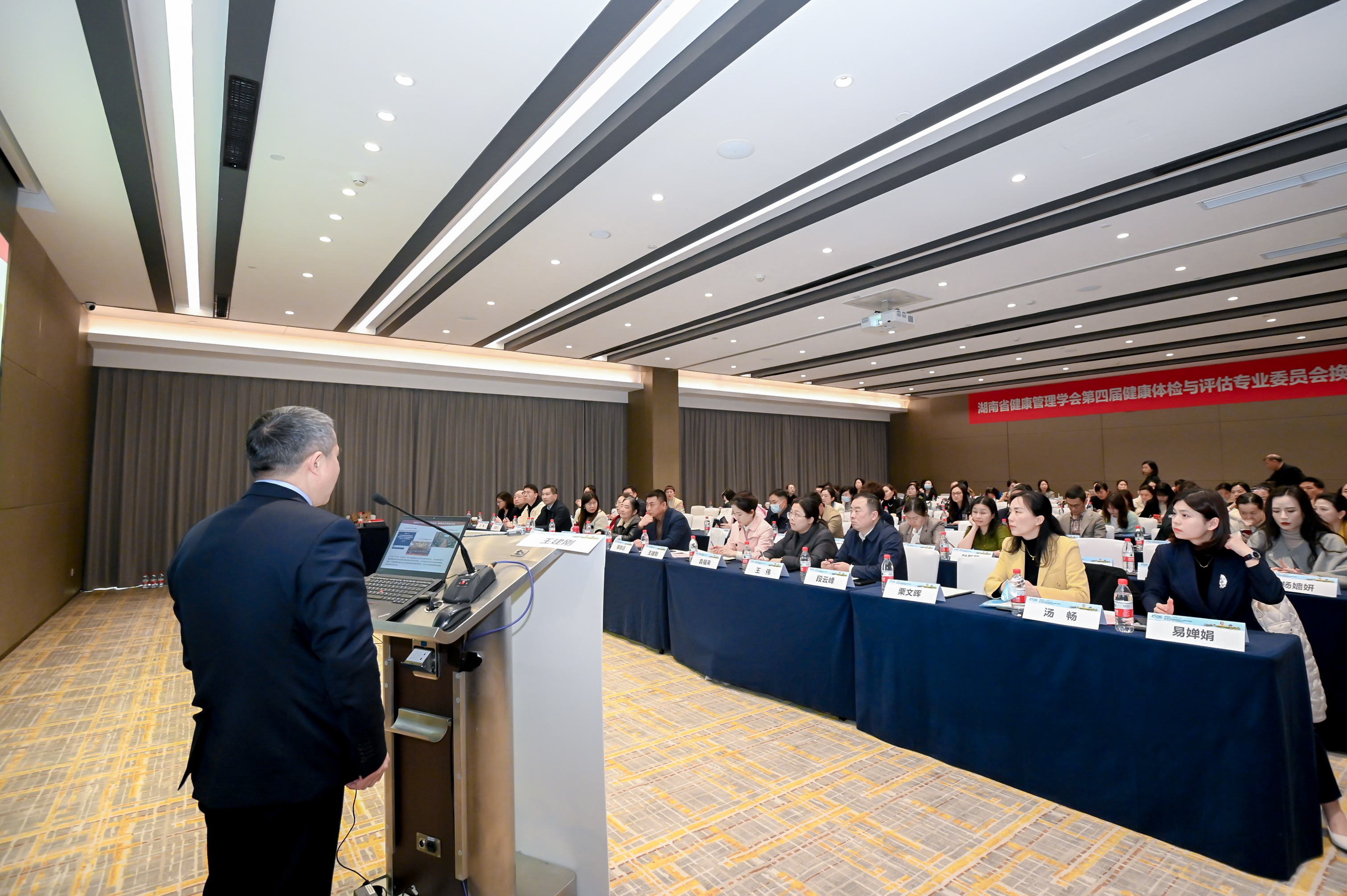 汤畅副秘书长宣读了《专业委员会选举办法》和《第四届健康体检与评估专业委员会候选人名单》,经现场投票表决,选举产生了107名专委会委员。中南大学湘雅三医院健康管理中心主任王建刚教授当选为主任委员,中南大学湘雅医院健康管理中心原主任蒋红霞教授被举荐为新一届专委会顾问。中南大学湘雅医院健康管理中心副主任袁福来、中南大学湘雅二医院健康管理中心常务副主任王伟、中南大学湘雅三医院健康管理中心王雅琴、湖南省人民医院健康管理中心主任李慧、湖南省中医医院治未病与健康管理质量控制中心主任兰红勤教授、湖南中医药高等专科学校附属第一医院(湖南省直中医医院)党委书记段云峰、南华大学附属第二医院副院长洪涛、南华大学附属南华医院副院长刘龙飞、长沙市中心医院健康管理中心主任栗文晖、株洲市中心医院健康管理中心主任王炜共10人当选新一届专委会副主任委员,中南大学湘雅三医院健康管理中心覃岳香担任专委会秘书。