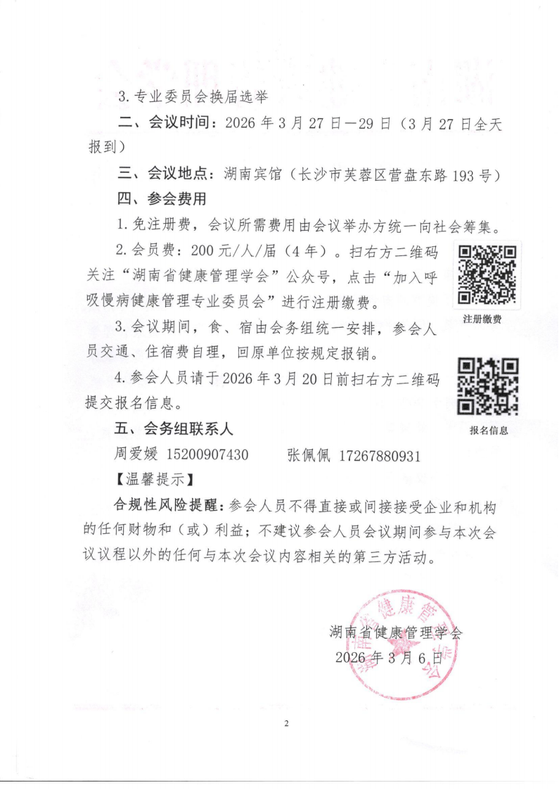 关于召开“湖南省健康管理学会静脉治疗全程管理专业委员会学术年会暨换届大会暨2026年血管通路技能新进展培训班” 的通知(第二轮)