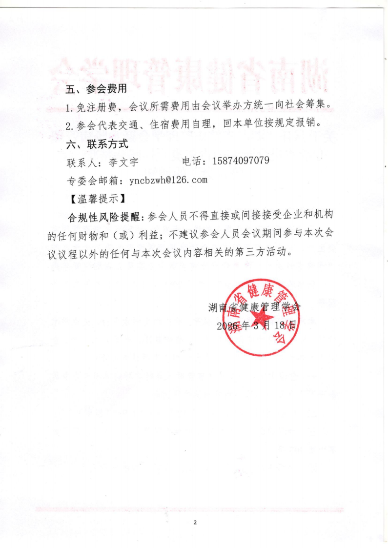 关于召开“湖南省健康管理学会静脉治疗全程管理专业委员会学术年会暨换届大会暨2026年血管通路技能新进展培训班” 的通知(第二轮)