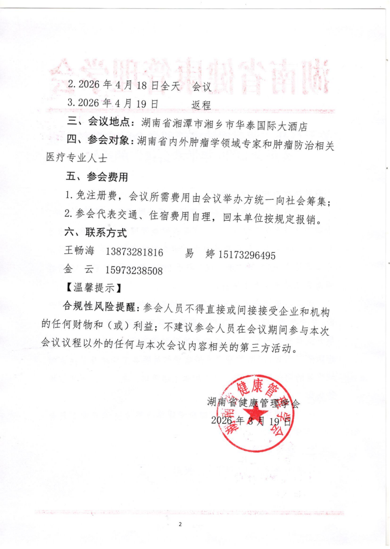 关于召开“湖南省健康管理学会肿瘤防治专业委员会2026年学术会议”的通知