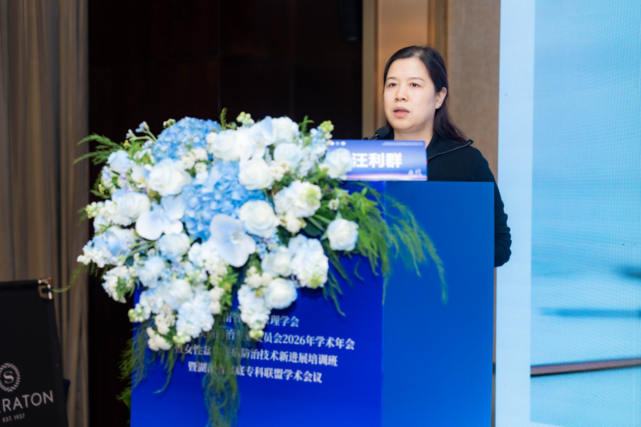 接着,湖南省妇幼保健院副院长何青在致辞中首先对向莅临本次会议的各位领导、专家学者表示欢迎及感谢。何院长介绍了湖南省妇幼保健院的历史背景和取得的成就:我院是一家集临床医疗、妇幼保健、教学科研于一体的三级甲等妇幼保健机构,我院是国家卫生健康委出生缺陷研究与预防重点实验室依托单位、南华大学附属妇幼保健院(临床学院),妇产国家区域医疗中心建设单位。何院长表示:随着医学技术的快速发展和健康需求的不断提升,盆底疾病的早期筛查、精准诊疗和康复管理已成为妇幼健康工作的重点方向。作为本次会议的主办单位,湖南省妇幼保健院积极推动全省盆底疾病防治体系建设,深化专科联盟,开展基层培训指导,推进多学科协作诊疗。最后何院长表示:本次年会汇聚国内专家交流前沿技术,是推动湖南省盆底健康事业发展的重要契机。湖南省妇幼保健院将持续发挥学科引领作用,强化协同机制,加大对基层医院的支持,积极构建湖南省女性全生命周期服务体系。