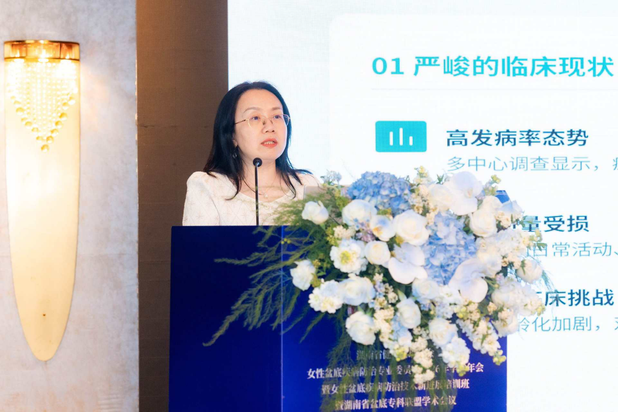 会议由湖南省健康管理学会女性盆底疾病专业委员会主任委员吴湘主持,吴湘教授指出,回首在过去的一年,专业委员会在各位委员努力下成绩斐然。我们不断普及盆底疾病知识,提高女性对盆底功能障碍的认识,提升了早诊断早治疗意识;积极开展学术交流,分享前沿研究成果,推动了诊疗技术不断进步;加强人才培养,为行业培养了更多合格的专业人才。但是当下我们省内的盆底疾病防治学科发展仍面临多重挑战:基层诊疗同质化水平有待提升,盆底疾病早期筛查体系尚未完善,多学科协作机制亟需加强等,本次年会邀请了众多盆底业内权威,围绕盆底疾病热点话题深入探讨,希望大家积极交流,碰撞出思想火花!