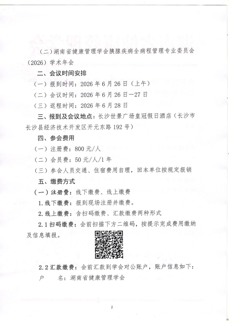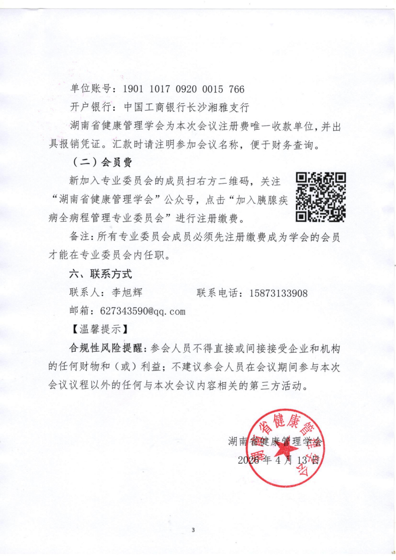 关于召开“第一届松雅湖血管介入论坛暨湖南省健康管理学会胰腺疾病全病程管理专业委员会(2026)学术年会”的通知(第二轮)
