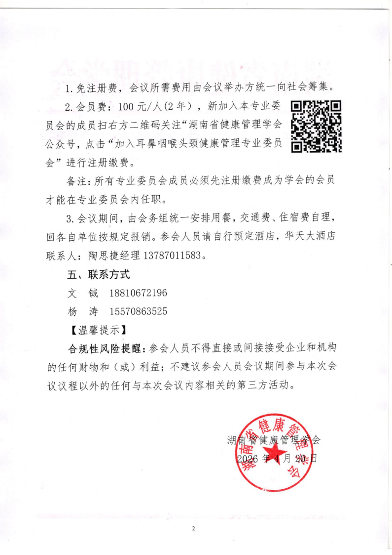 关于召开“2026湖南省健康管理学会耳鼻咽喉头颈健康管理专业委员会学术年会”的通知 (第二轮)