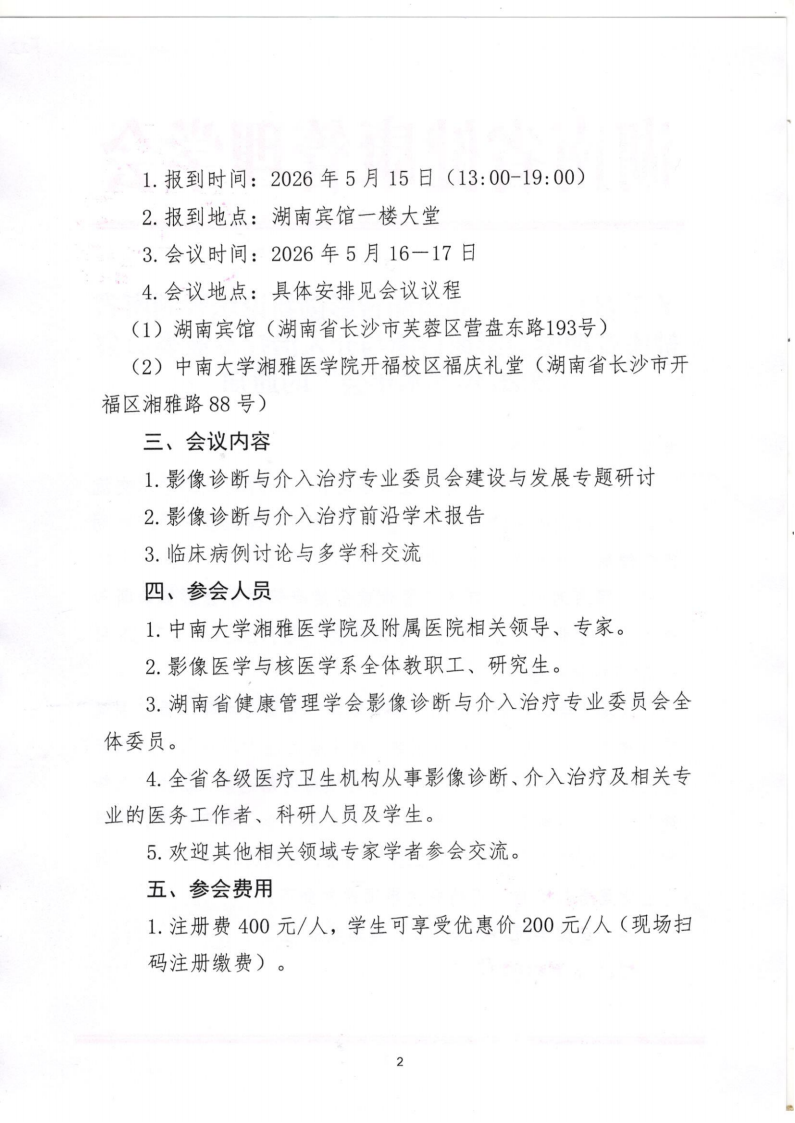 关于召开“第一届潇湘智影创新论坛暨湖南省健康管理学会影像诊断与介入治疗专业委员会2026年学术年会”的通知